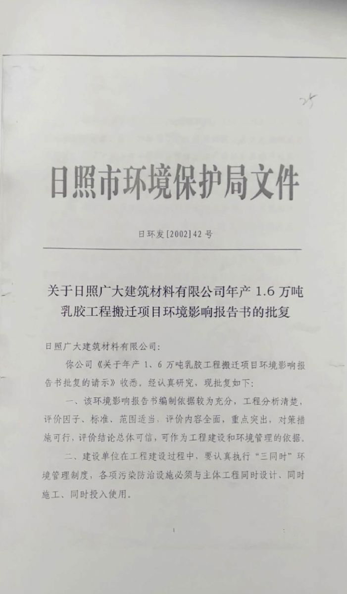 日照廣大建筑材料有限公司,位于風景秀麗的海濱城市山東日照,成立于1988年,是專業(yè)生產(chǎn)高分子化工產(chǎn)品,集科研開發(fā)、生產(chǎn)經(jīng)營為一體的化工企業(yè),主要產(chǎn)品為丙烯酸脂類乳液和丁苯膠乳。是國內(nèi)目前江北同行業(yè)產(chǎn)銷量最大企業(yè)之一。